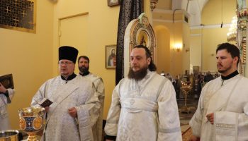 За богослужением епископ Феодосий совершил рукоположение во диакона певца, чтеца и иподиакона собора Андрея Перфильева. Духовенство и хор торжественно пропели «Аксиос!» (что означает «Достоин!»).