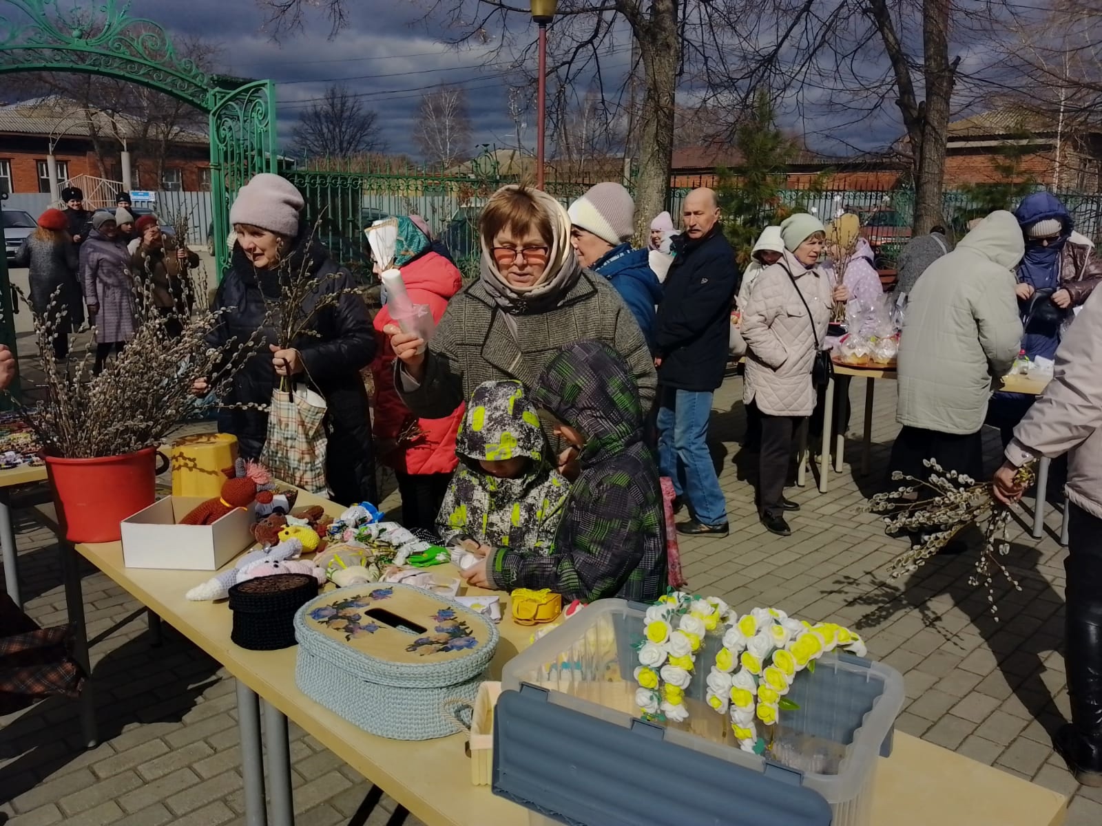 На следующий день, после Божественной литургии в честь праздника Входа Господня в Иерусалим, салдинцы смогли посетить традиционную благотворительную ярмарку возле храма Иоанна Богослова. Горожан радовал большой выбор авторских изделий: закладки для чтения духовной литературы, текстильные куклы, вязаные цыплята, украшения, плетеные корзины и шкатулки. Не первый год особым спросом пользуются аппетитные куличи и другие сладости. И даже ветреный день не стал помехой для тех, кто пожелал приобрести на ярмарке изделия, сделанные мастерицами с теплом и любовью.