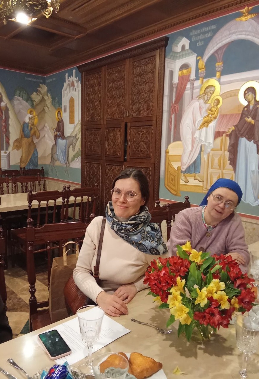 Площадкой очередной встречи участников Клуба стал Александро-Невский Ново-Тихвинский женский монастырь. Экскурсия по обители, молебен в Скорбященском храме, знакомство с житием святого праведного Василиска Сибирского и с проектом поддержки раненых воинов – участников СВО «Здравия желаем», мастер-класс по фотографированию для сайта и соцсетей, обсуждение эскизов брендбука православной пресс-службы – все это уместилось в неполные 4 часа, и казалось, что невозможно насытиться идеями и теплом профессионального общения.