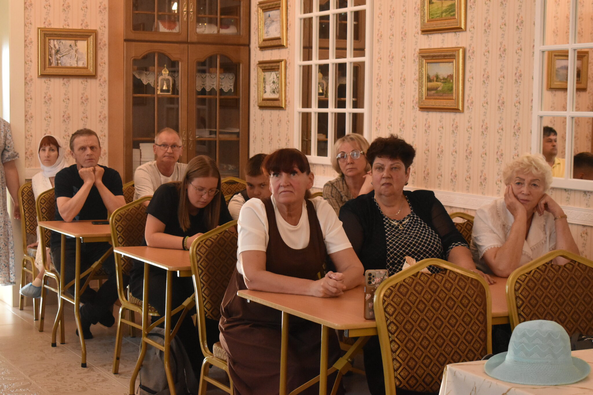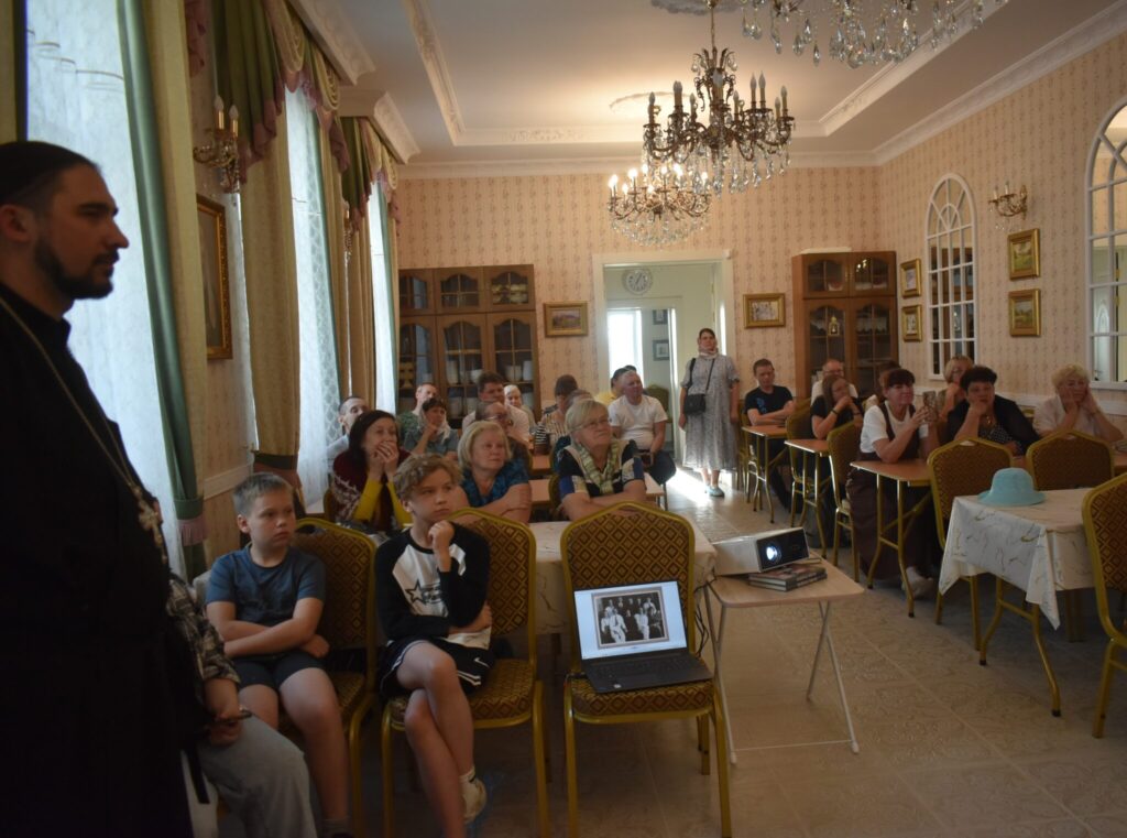 Ее по приглашению настоятеля храма иерея Максима Захарова и прихожан и по благословению игумении Марии провела заведующая архивным отделом монастыря В. А. Чемезова.